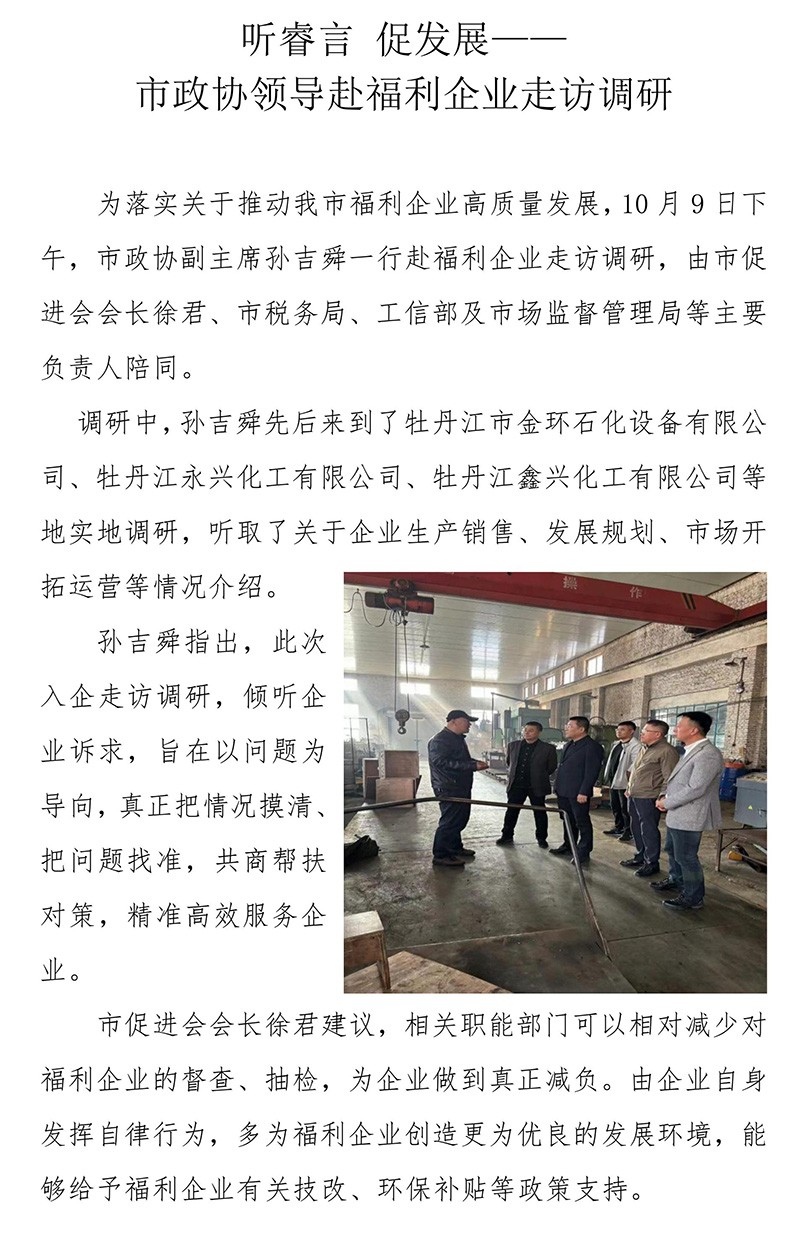 聽睿言 促發(fā)展——市政協領導赴福利企業(yè)走訪調研