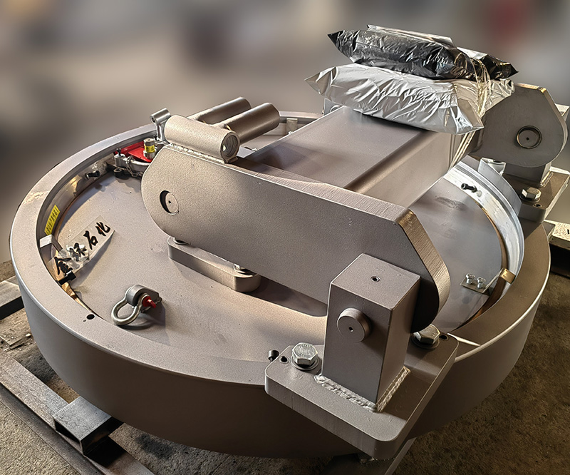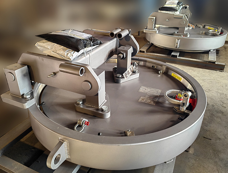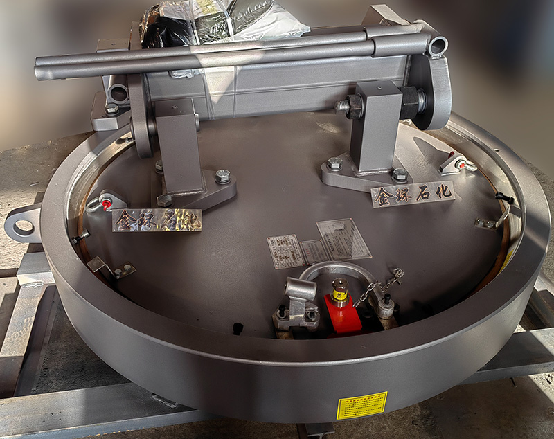 快開(kāi)盲板是用于壓力管道或壓力容器的圓形開(kāi)口上的一種機(jī)械裝置。一般由筒體法蘭、頭蓋、勾圈或卡箍、密封圈、安全聯(lián)鎖機(jī)構(gòu)、開(kāi)閉機(jī)構(gòu)、轉(zhuǎn)臂及短節(jié)(需要時(shí))等部件構(gòu)成。
