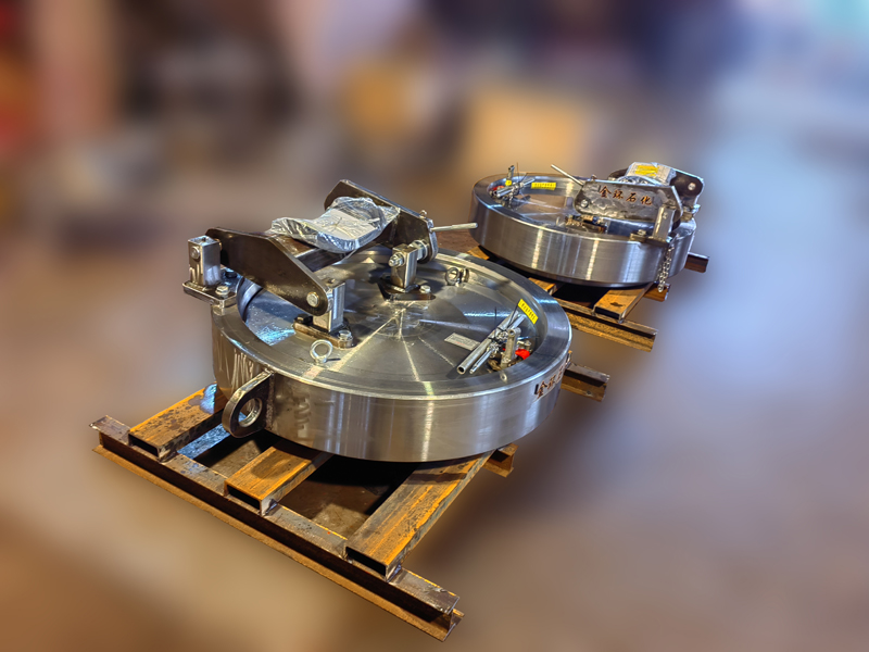 快開盲板是用于壓力管道或壓力容器的圓形開口上的一種機(jī)械裝置。一般由筒體法蘭、頭蓋、勾圈或卡箍、密封圈、安全聯(lián)鎖機(jī)構(gòu)、開閉機(jī)構(gòu)、轉(zhuǎn)臂及短節(jié)(需要時)等部件構(gòu)成。
